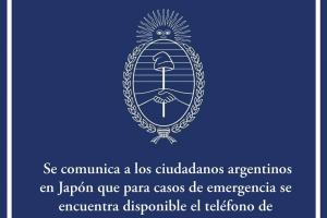 Se comunica a los ciudadanos argentinos en Japón que para casos de emergencia se encuentra disponible el teléfono de guardia: (+81) 80-1327-9416