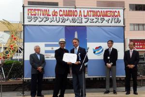 En la ocasión, el Embajador Alan Beraud entregó al Sr. Hidejiro Mimira, Presidente de la Asociación de Intercambio Cultural entre Latinoamérica y Japón, un diploma en reconocimiento de la misma como “entidad asociada a la conmemoración del 120 Aniversario de Relaciones Diplomáticas entre Argentina y Japón, con la organización del Festival de Camino a Latinoamérica - Sección Argentina - como evento estelar del calendario oficial de celebraciones”.