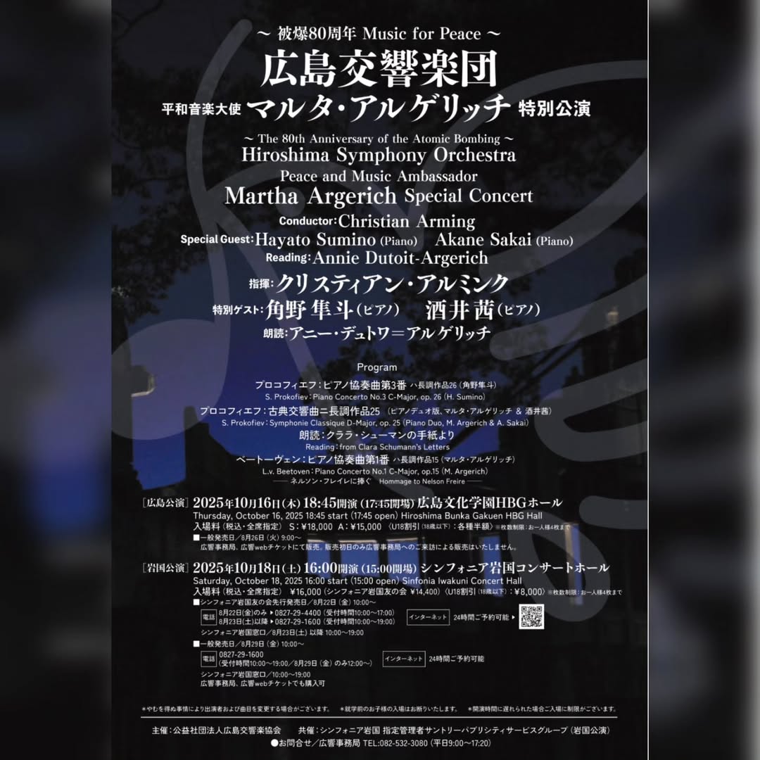 Argerich Music for Peace Concert with Hiroshima Symphonic Orchestra and Hayato Sumino