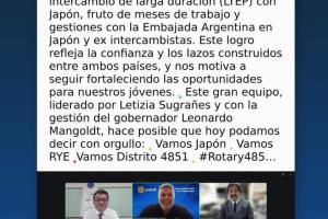 ¡Felicitamos al Distrito Rotario 4851 de Argentina y al Distrito Rotario 2650 de Japón por reanudar -luego de más de 30 años- los programas de intercambio estudiantil de larga duración entre ambos países!