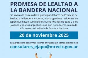 Se invita a la comunidad a participar del acto de Promesa de Lealtad a la Bandera Nacional, a realizarse el día jueves 20 de noviembre del 2025.
