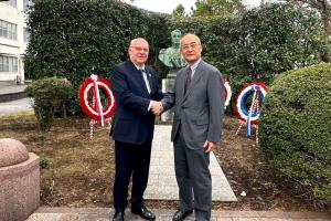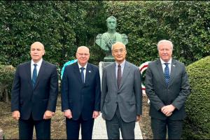 国立防衛大学校にあるサン・マルティン将軍の胸像前にて式典を開催し、我が国と日本、そしてチリ・ペルーを結ぶ伝統を再開いたしました。