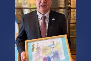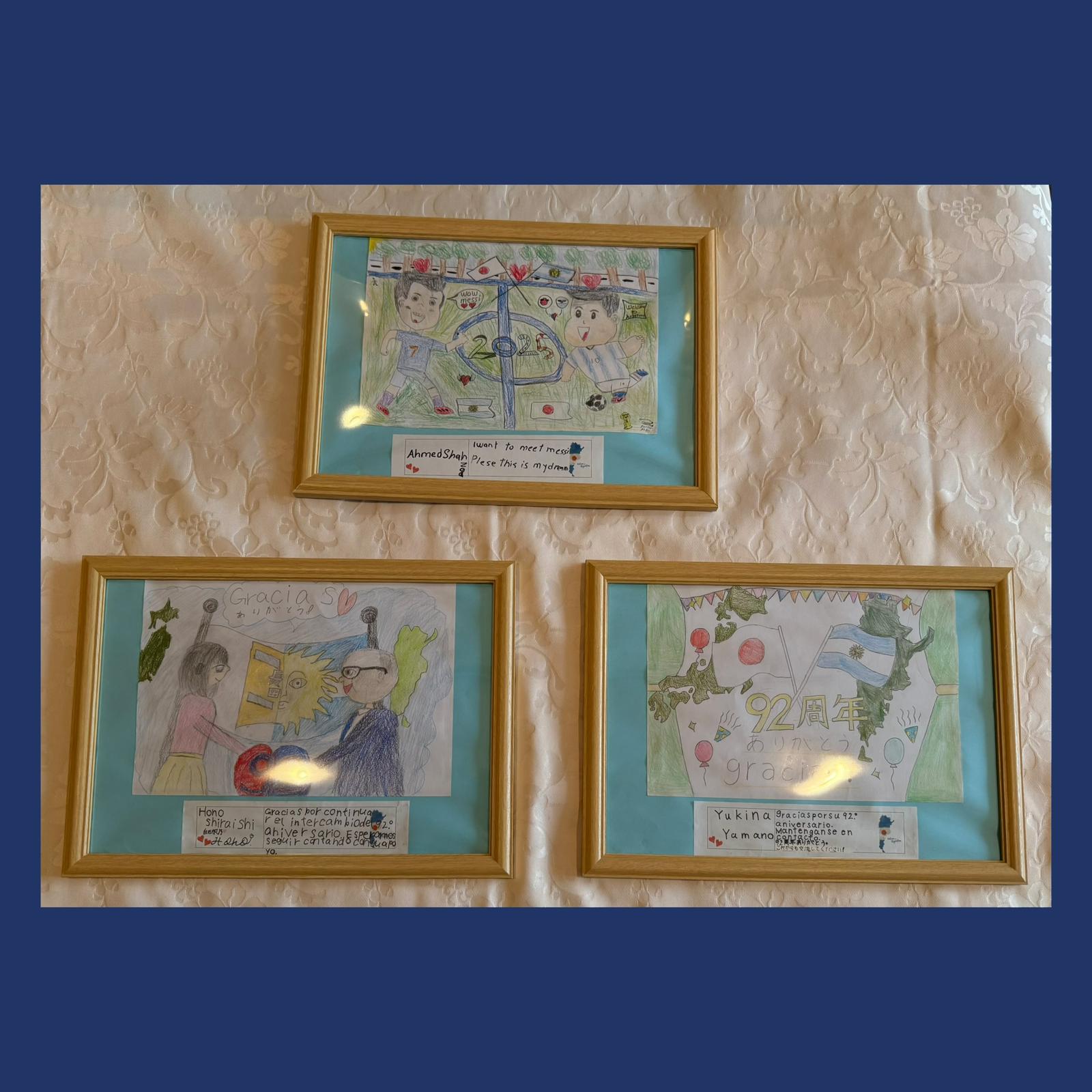 毎年恒例として、アルゼンチンと日本の友情を最もよく表現した絵を制作した長田小学校の生徒3名を表彰しました
