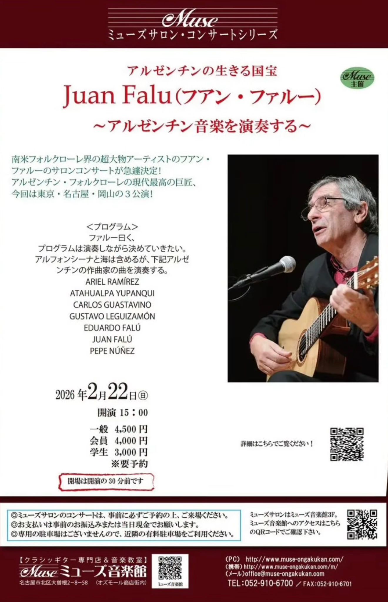 前回の来日から数年ぶりに、アルゼンチン・フォルクローレ界の巨匠、ギタリストのフアン・ファルーが再び日本へやって来ます。