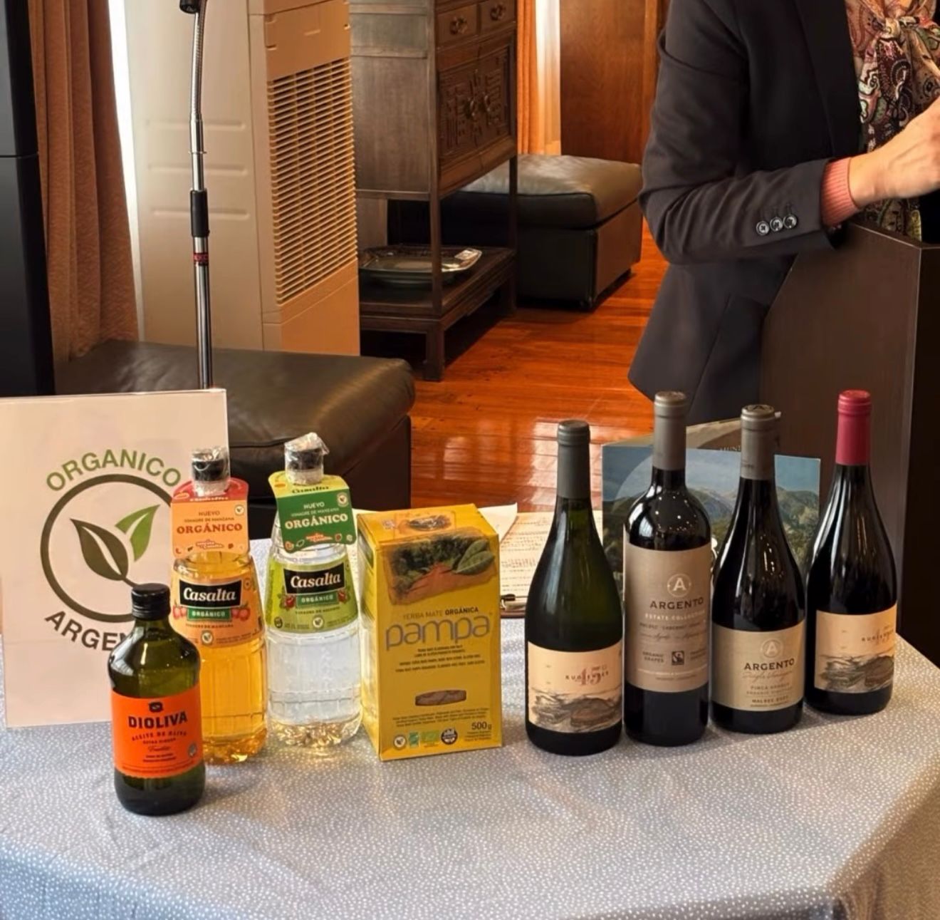 アルゼンチン産のオーガニック製品として、蜂蜜、ワイン、オリーブオイル、マテ茶、エッセンシャルオイル、そしてビネガーなどが紹介されました。