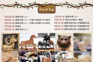 国際木彫ショー・手摺り木版画うちわ制作ワークショップ・作品展示会