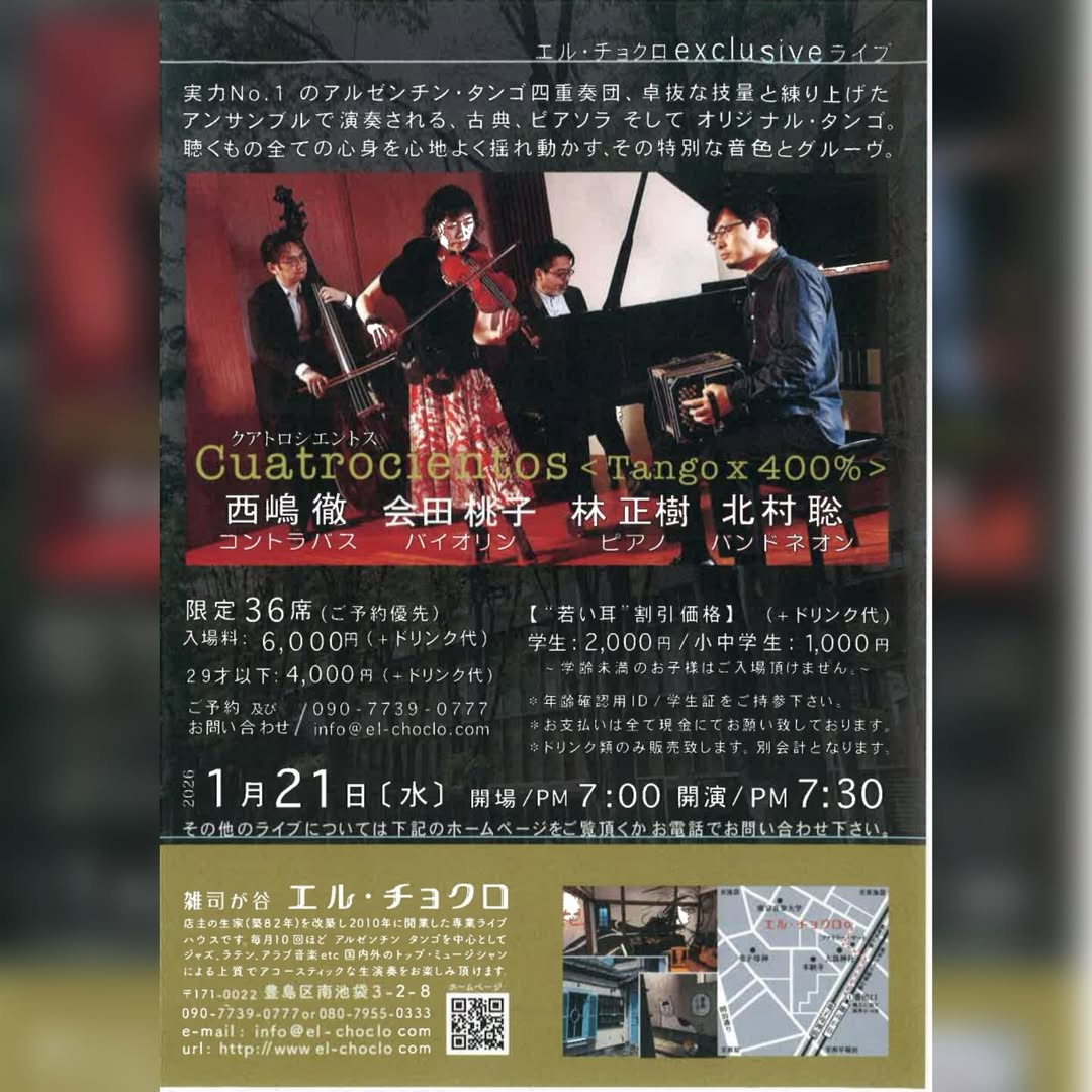 2026年1月21日 - Cuarteto Invierno アルゼンチンタンゴ四重奏団